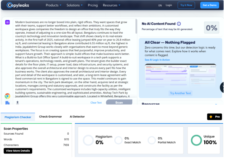 Jayalakshmi Group focuses on thoughtful planning, advanced technology, and sustainable features that support modern organisations. If your business is ready for a workspace built around how you operate, reach out to our team and discover what a customised workspace can do for you.